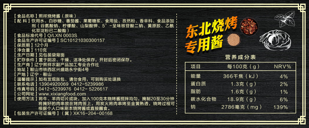 飲用水、白砂糖、番茄醬、果葡糖漿、食用鹽、孜然粉、香辛料、食品添加劑(谷氨酸鈉、檸檬酸、山梨酸鉀、黃原膠、5-呈味核苷酸二鈉、乙?;p淀粉乙二酸酯)