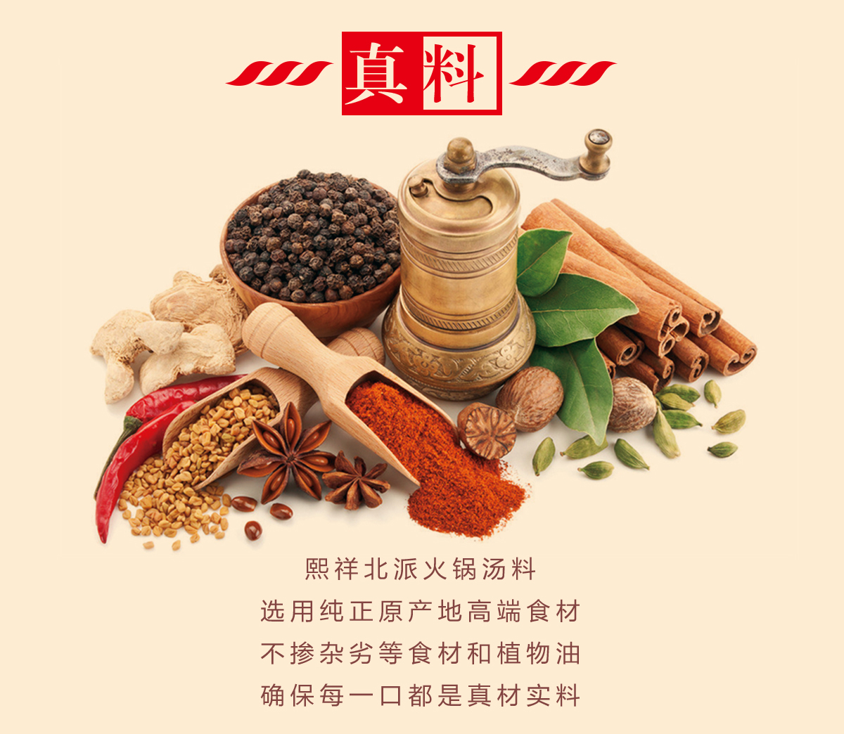 飲用水、植物油、郫縣豆瓣、食用鹽、白砂糖、辣椒、花椒、麻椒、芝麻、茴香、香辛料、食品添加劑(谷氨酸鈉、山梨酸鉀、5-呈味核苷酸二鈉)